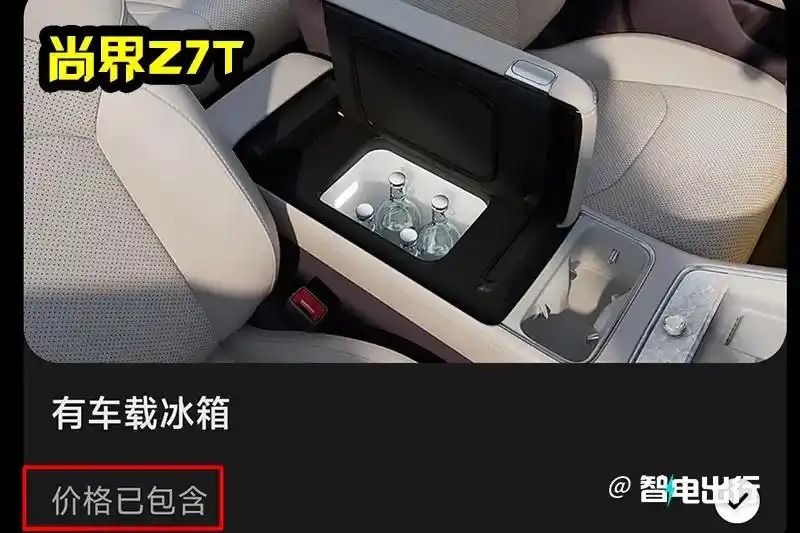 三电规格、配置Z7和Z7T基本是一模一样。有一点很有意思,贵了1万元的Z7T全系标配冰箱,Z7即便是顶配也需要花3000块钱选装。