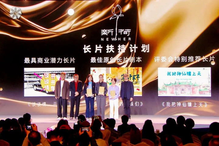新荷NEWHER电影单元长片扶持计划再迎突破,230个项目踊跃应征,经过严苛终审,由英皇电影制作及项目发展总经理、新荷NEWHER·工作坊制片导师、资深监制、制片人梁琳,壹同制作副总裁、总制片人范霞担任揭晓嘉宾,依次公布《谈谈情,开开车》获最具商业潜力长片荣誉、《朱好好和她的姐妹们》获最佳原创长片剧本荣誉、《我把神仙镶上天》获评委会特别推荐长片荣誉。北京瑞华时代文化有限公司联合创始人CEO、新荷NEWHER电影单元长片扶持计划终审评委刘瑞芳,中宣部中国人权发展基金会专项基金首席代表赵烨,大麦娱乐国际内容开发中心总经理、海纳国际青年导演发展计划负责人、新荷NEWHER电影单元长片扶持计划终审特邀行业评委林明杰,儒意电影公关总监魏广明,深圳市大疆创新科技有限公司高级市场经理张泽,知名摄影指导、中国影视摄影师学会名誉会长穆德远,登台为青年影人们颁发荣誉。从概念短片到院线长片,新荷为创作者铺就了最坚实的成长阶梯。